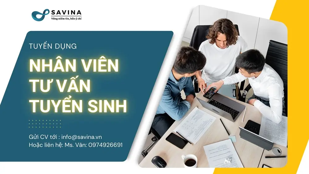 Gửi CV với tiêu đề “Tên | Ứng tuyển vị trí Nhân viên tư vấn tuyển sinh” tới info@savina.vn. Liên hệ: Ms. Vân: 0974926691.